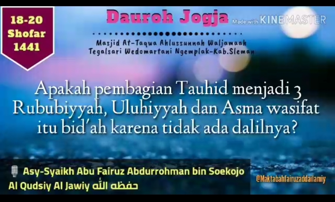 APAKAH PEMBAGIAN TAUHID MENJADI 3, RUBUBIYYAH, ULUHIYYAH, ASMA' WAS SHIFAT ITU BID'AH ? ADA JELASKAN SIFAT ALLAH YANG 20